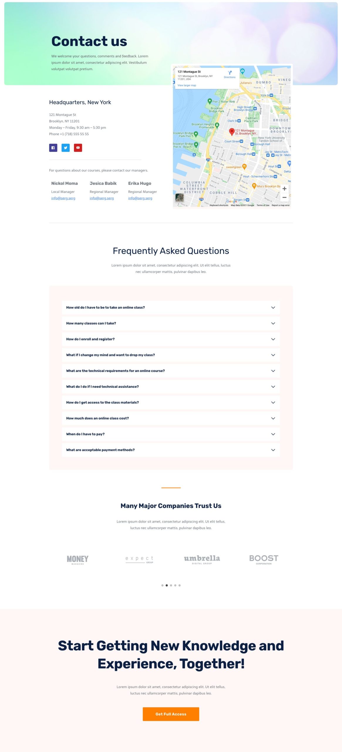 For questions about our courses, please contact our managers.